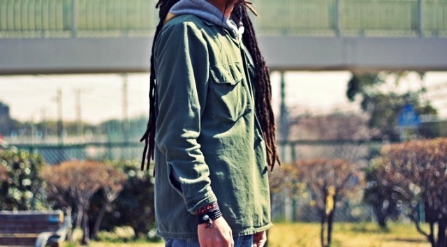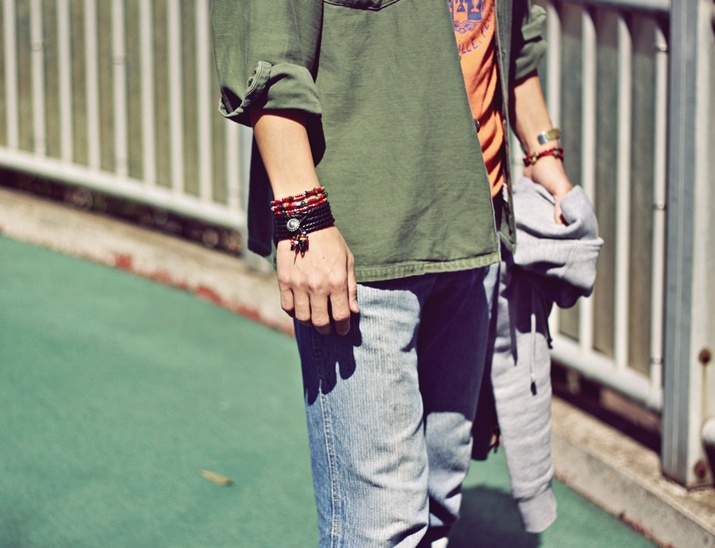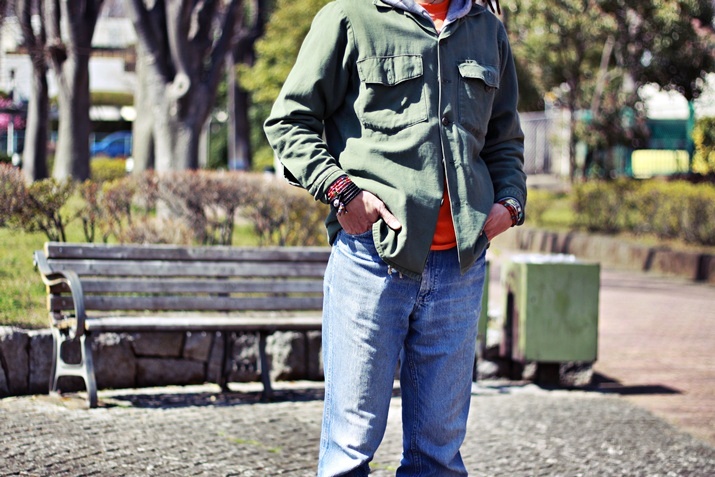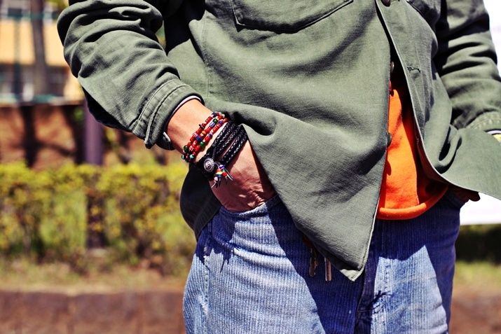 ■ ‘‘春’’メンズ着用写真 [鹿革ブラック×ビーズブレス]