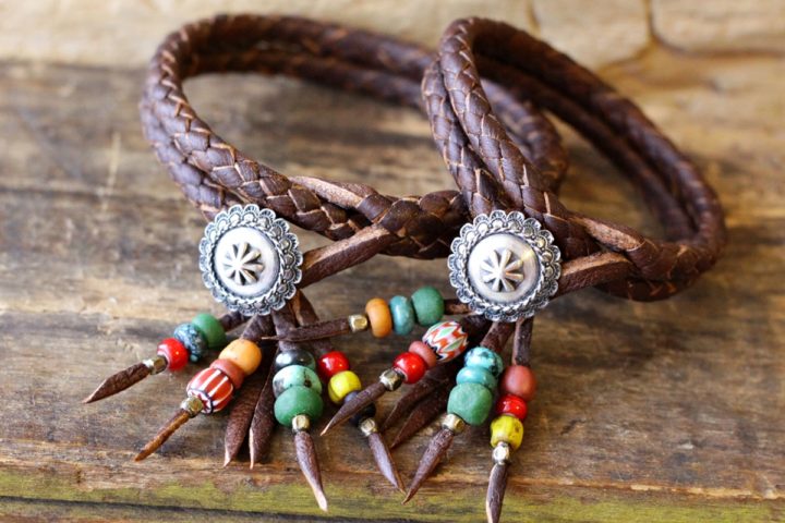 - 鹿革ブレス:2重巻き ビーズブレス:1重巻き